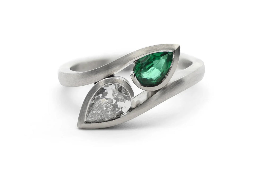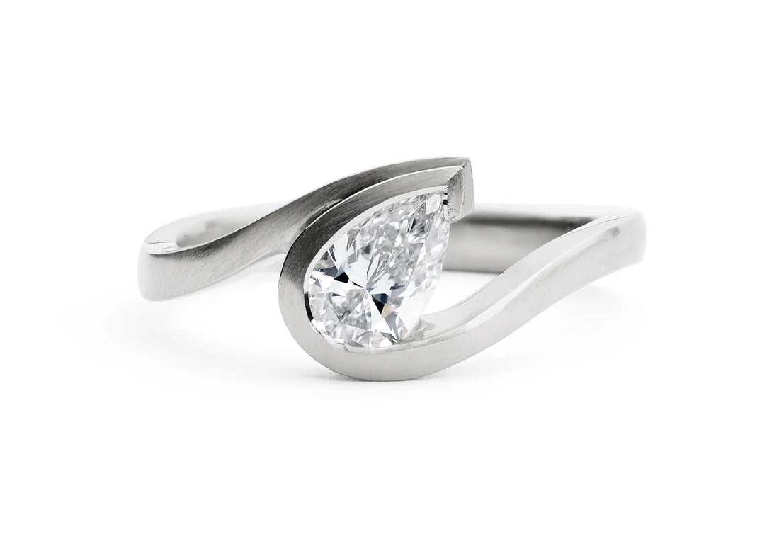 1.0CT East West Pear Diamond Unique Curved Engagement Ring