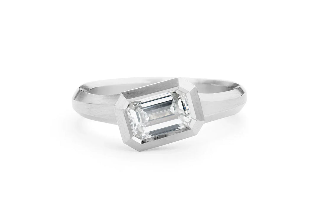 1.0CT Emerald Cut Unique Matte Finish Bezel Set Engagement Ring