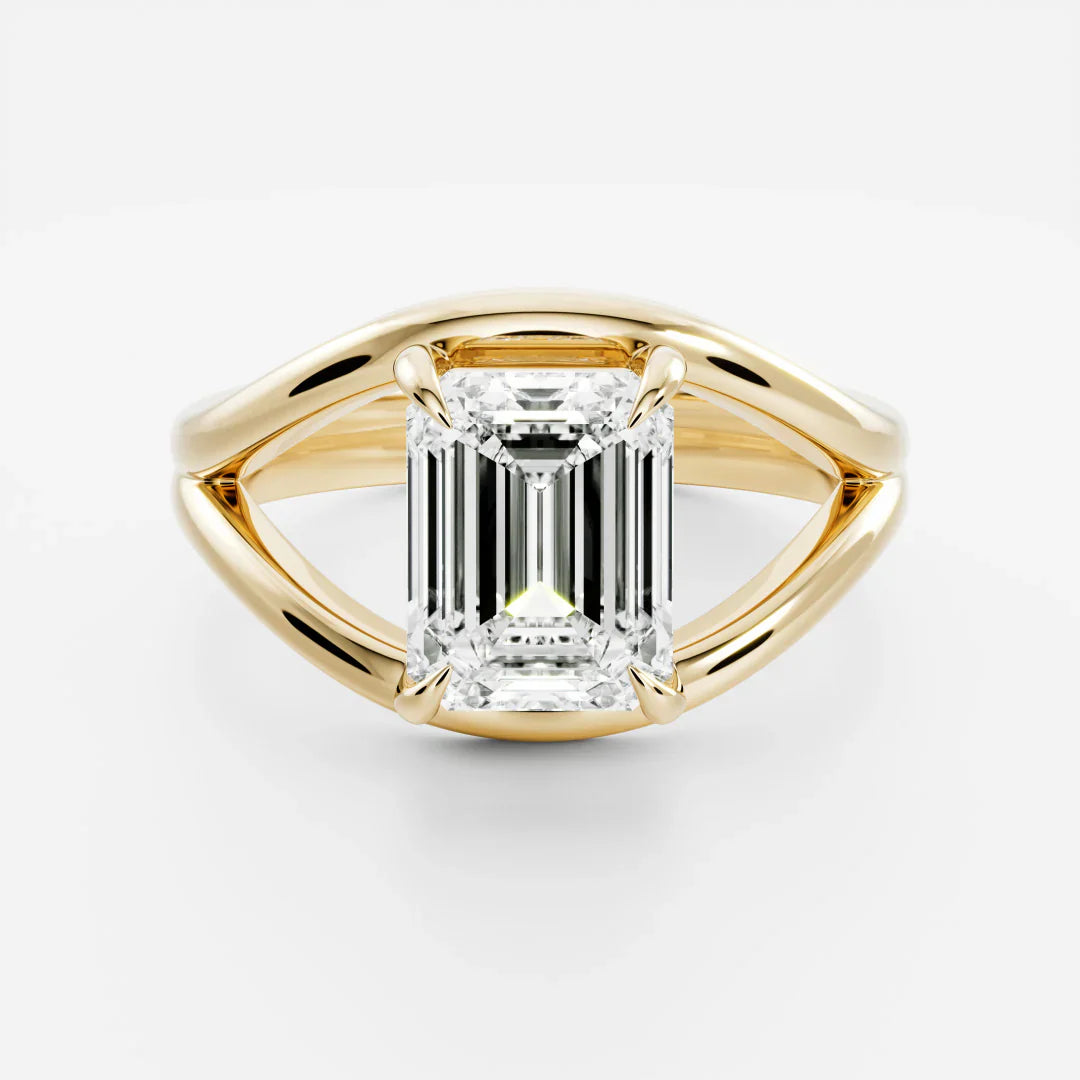 1.0CT Emerald Cut Unique Split Shank Solitaire Engagement Ring