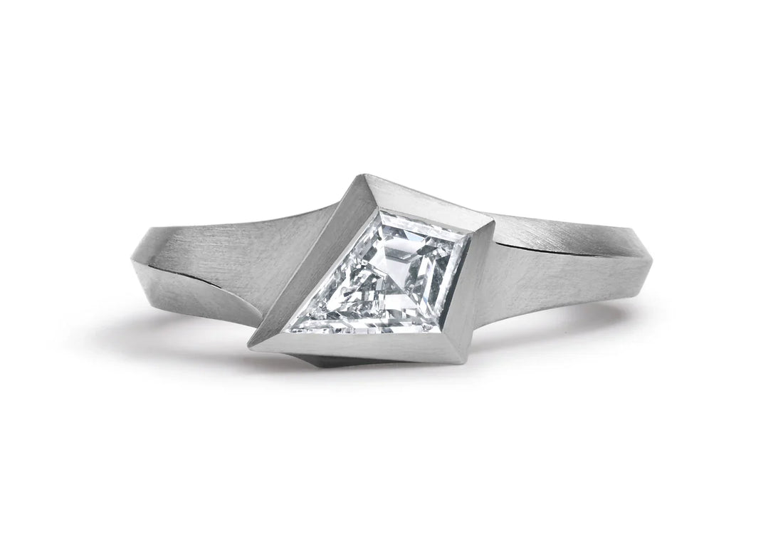 1.0CT Kite Cut Diamond Unique Solitaire Matte Finish Engagement Ring
