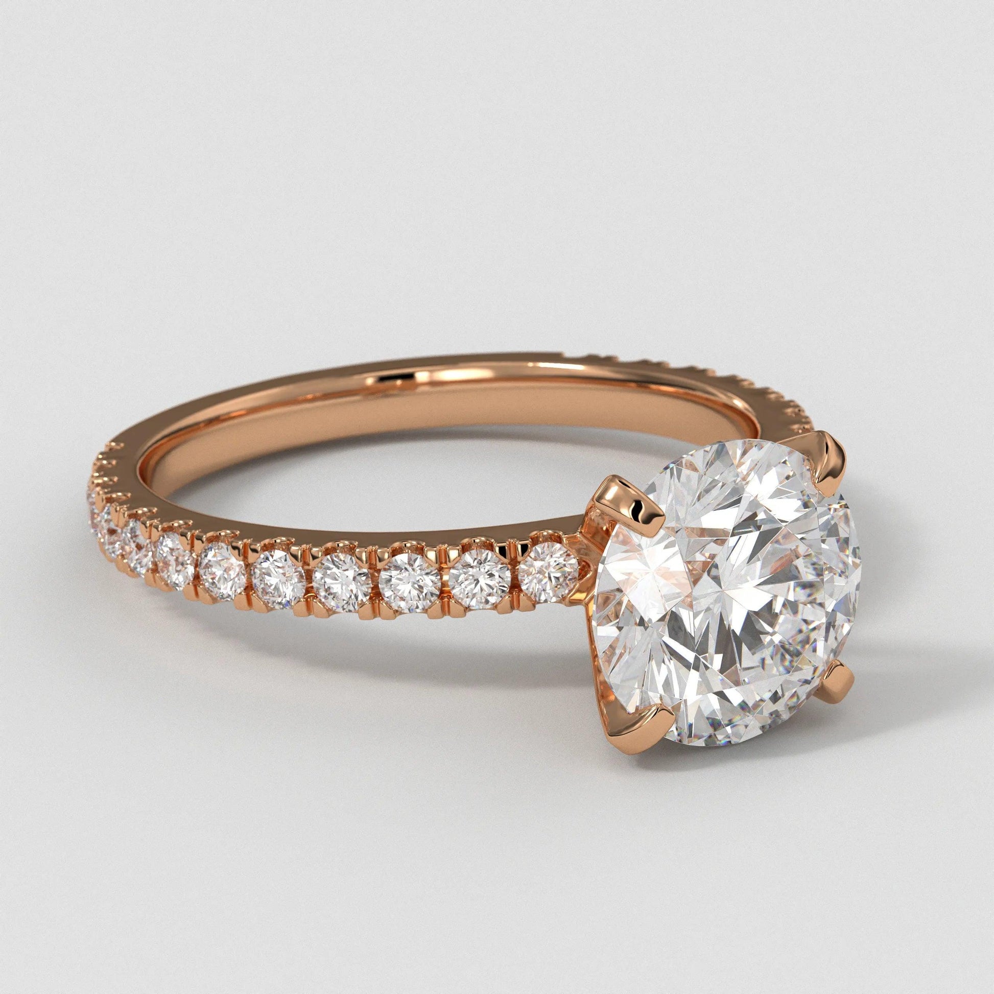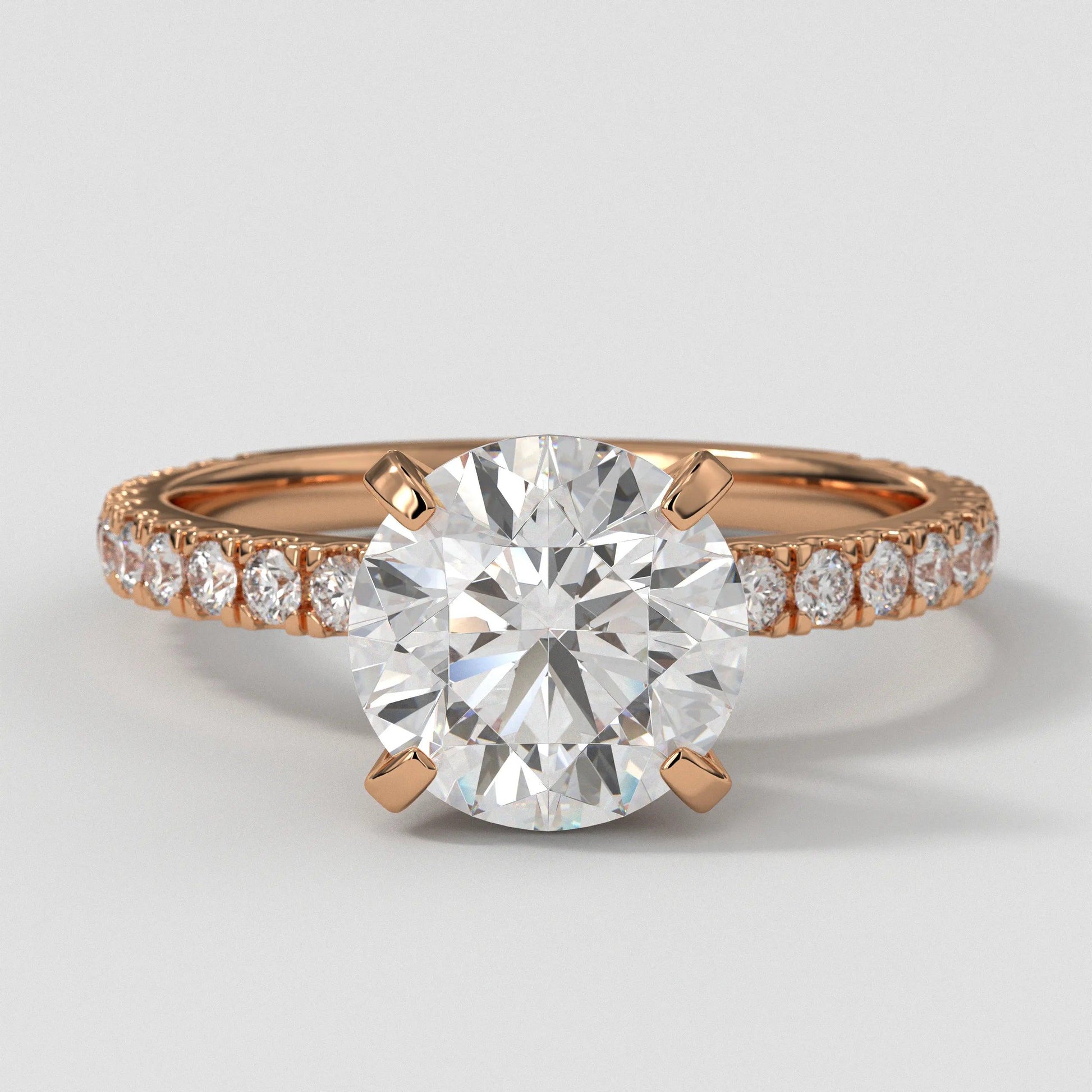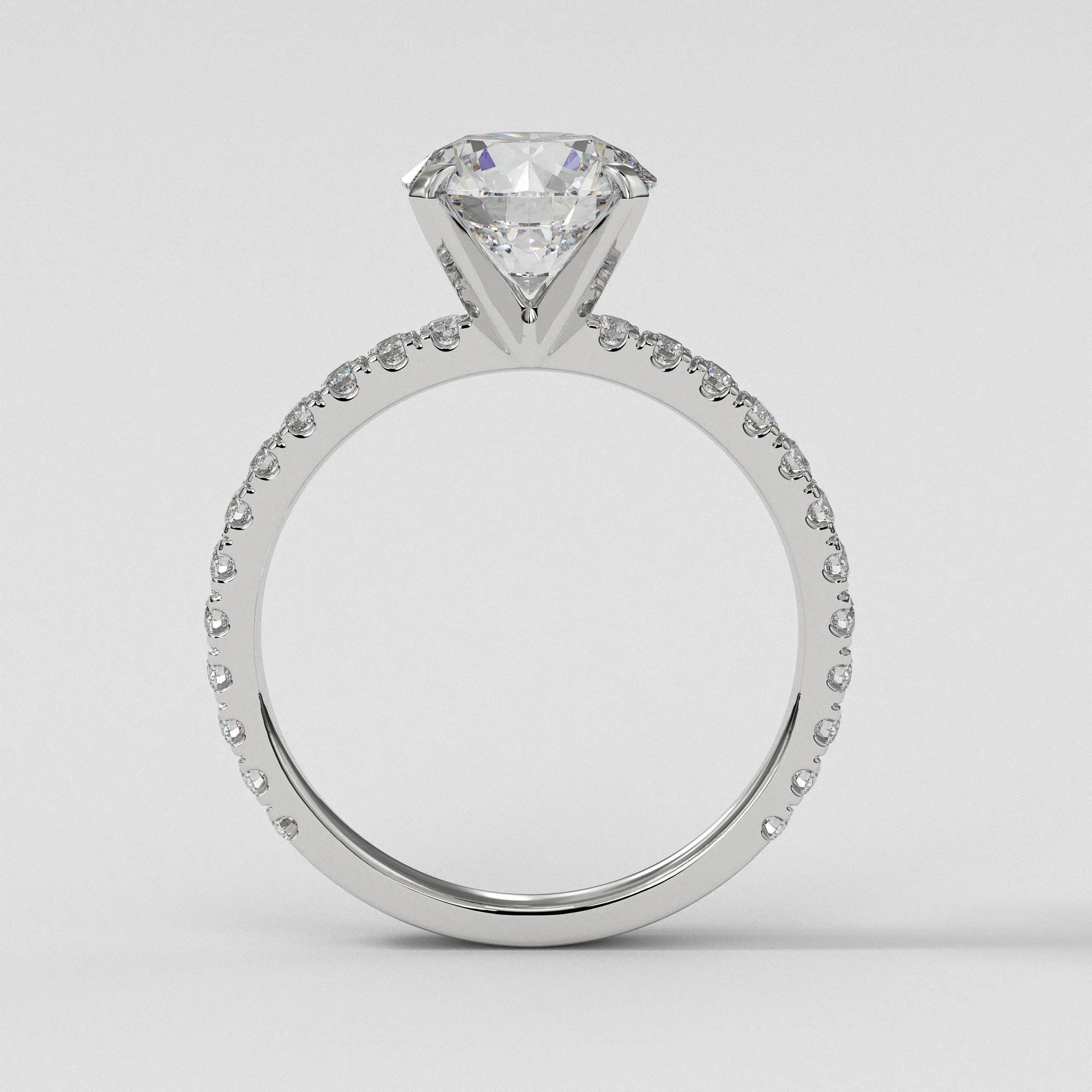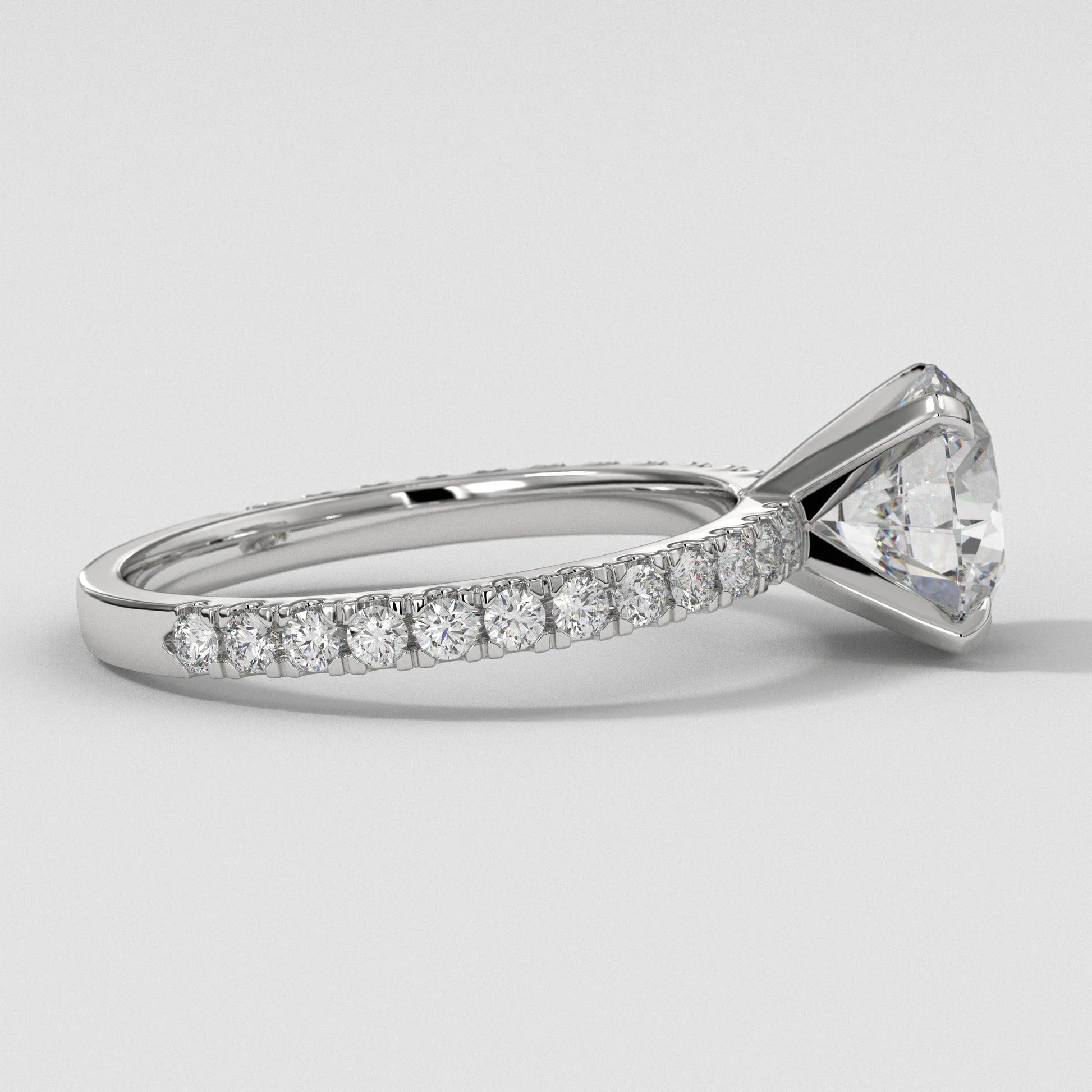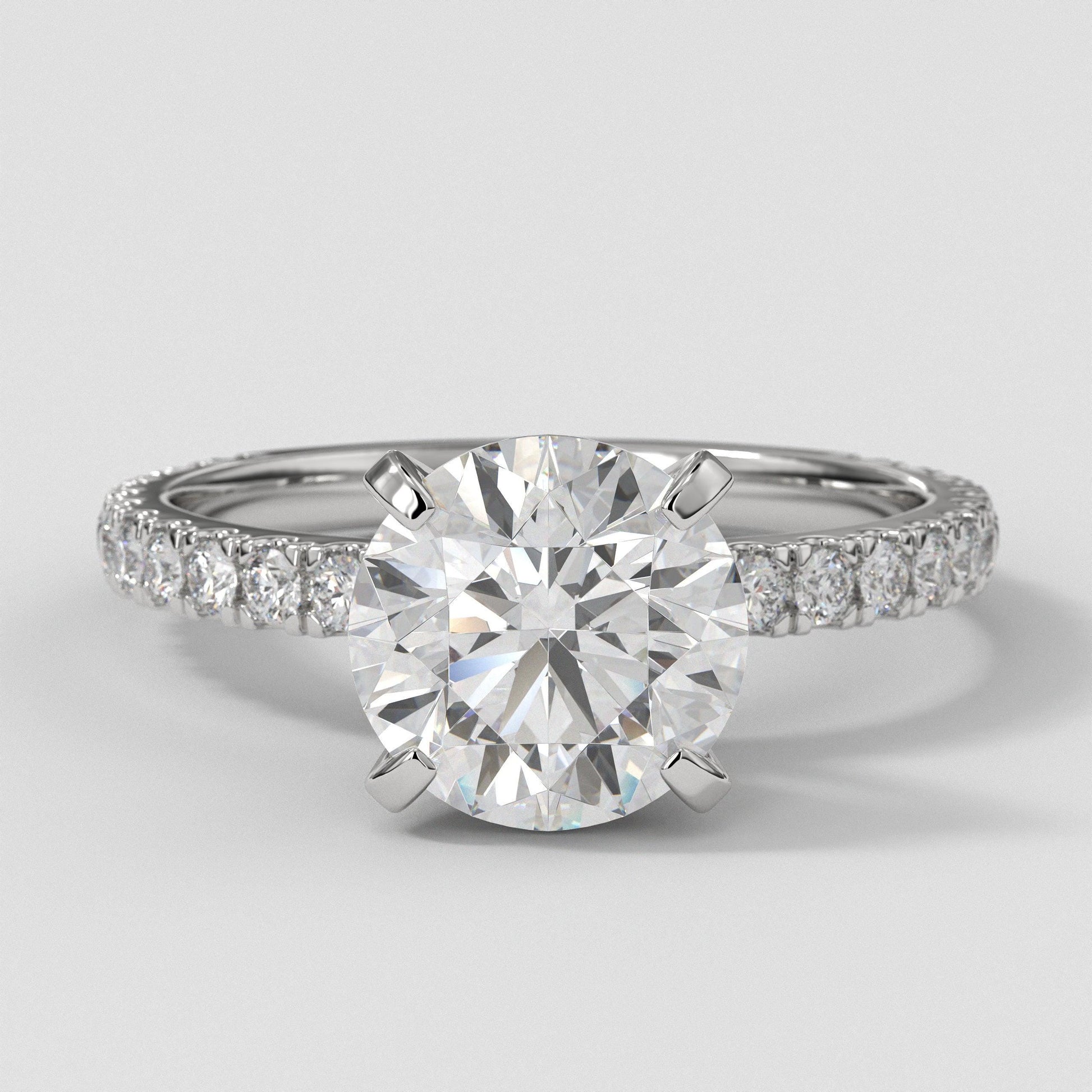 3 CT Lab Grown Diamond Engagement Ring: 14K White Gold Pave Setting