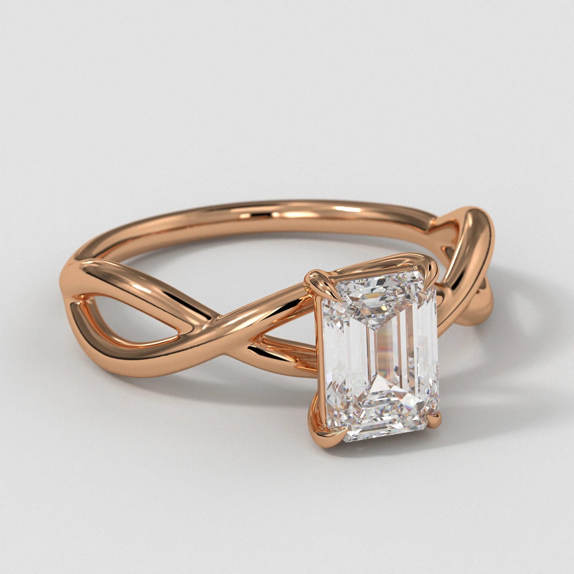 3CT Emerald Cut Diamond Engagement Ring: Nature-Inspired Gold Solitaire