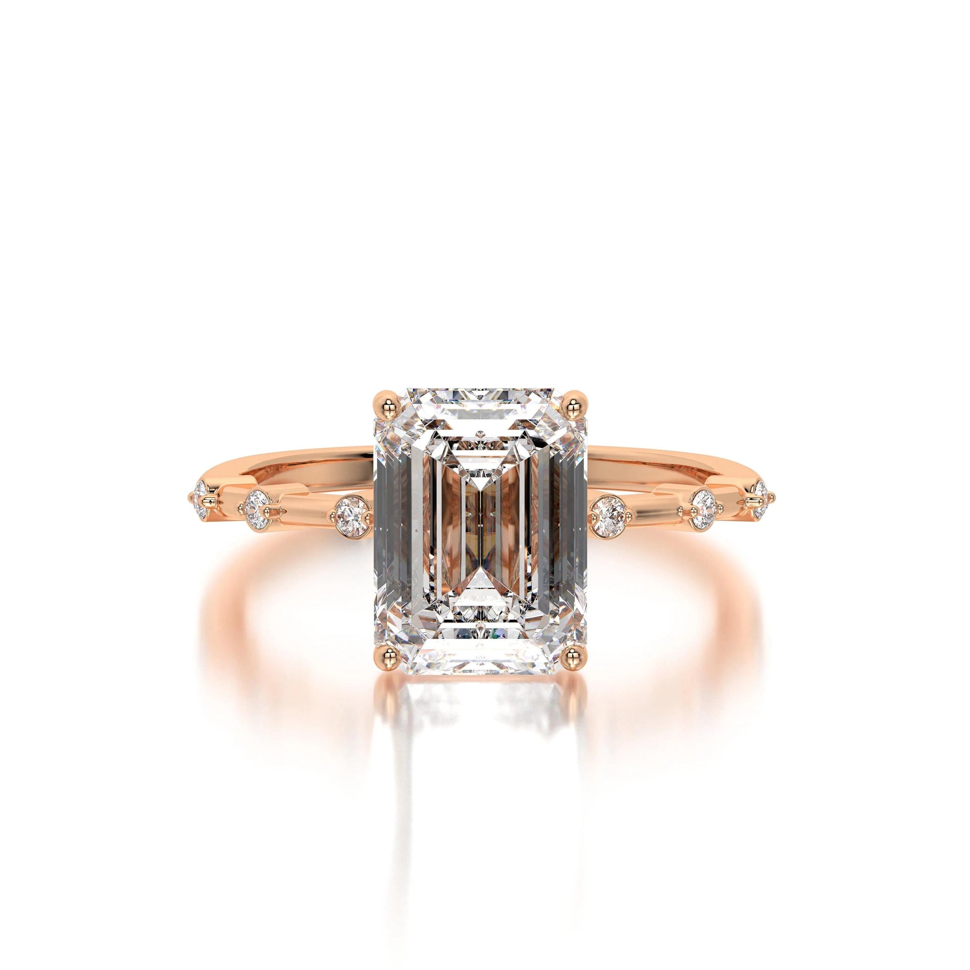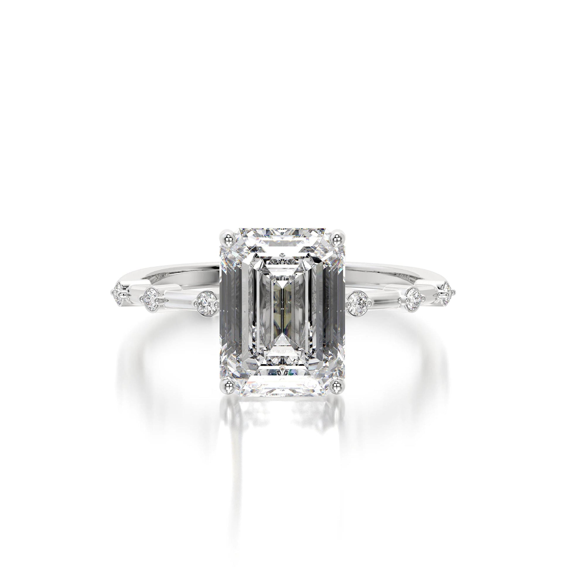 Emerald Cut Lab Grown Diamond Ring: Thin Pave 14K Gold Engagement Ring